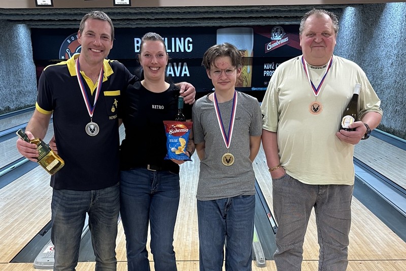 V závěrečném kole hraném na dvě hry tzv. osmičkou padl výkon 300 bodů rovnou pětkrát. Nejlépe finišovali Honza Brix – náhozem 565 bodů si pomohl z 28. místa na 19. místo celkově. 577 bodů naházel Jirka Nechutný. Ten si v naší pomyslné bowlingové „stíhačce“ pomohl ze 24. místa na konečné 12. místo. Pavel Štafa dlouho bojoval o ideální zápis z třetího kola. Ideální zápis sice nepadl, ale přesto ho nejvyšší nához závěrečného kola 587 bodů posunul Pavla o dvanáct příček na osmé místo v celkové výsledkové listině. Od šestého do druhého místa byly konečné náhozy v rozmezí osmi bodů, tak si někteří mohli drbat hlavy třeba i za poslední hody ve hře. Na čtvrté místo to dotáhla nakonec nejlepší žena turnaje Anička Doubravová celkovým výkonem 1341 bodů. 1342 bodů naházel bronzový Martin Straka, ten po celou dobu turnaje prokazoval stabilní výkonost. Dlouho až druhý Aleš ve výsledkové listině – Aleš Vlasák se prosadil závěrečnou části na konečných 1345 bodů, za které bral stříbrnou medaili. Nejlepší formu však potvrdil nejmladší účastník turnaje David Schiefner. Také on byl autorem jedné ze třístovek, a i když závěrečná hra turnaje už se mu tolik nepovedla, tak s celkovým průměrem přes 235 bodů turnaj s náskokem 70 bodů vyhrál. Nejlepším gratulujeme a všem ostatním děkujeme za hojnou účast.